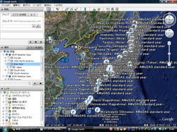 ダウンロード後、グーグルアース上に気象データポイントが 表示されます。