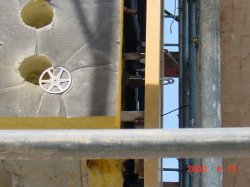 2000年6月12日 外断熱施工中のオフィスビル 断熱材tと外装材が良く見えます 外断熱であれ無断熱の建物は仕上がったときは同じ外観です