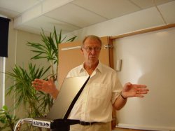 2002年9月7日 ルンド大学でNPO外断熱推進会議一行に講義するアーネ・エルムロート博士