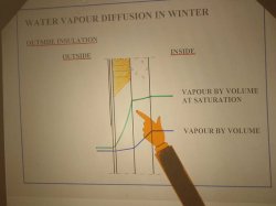 2002年9月7日 講義風景 冬の内断熱の壁内における湿気の移動と露点温度 結露あり