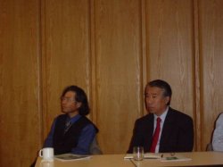 2002年9月12日 シュトゥットガルト本部 田中敏郎さん(左)と鮫島宗明元衆議院議員