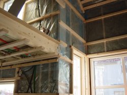 2003年1月27日 室内側 充填断熱材の内側に防湿層と45センチの垂木 ここに断熱材を充填する~内断熱? いや高断熱