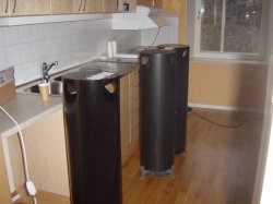 2003年1月27日 無暖房住宅のモデルハウス 普段生活者がいないため、人体及び家電製品から発生する熱を想定して発生させる機械