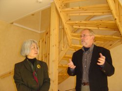 2003年10月22日 リンドース 無暖房住宅内で説明する建築家アンディッシュ・エングマン氏