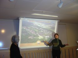 2003年10月23日 イエテボリ市 ゴードステン地区 団地再生について説明するアンキ・エリクソン女子と通訳の友子ハンソンさん