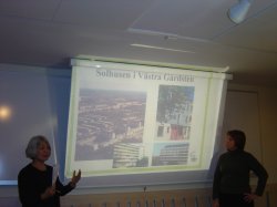2003年10月23日 イエテボリ市 ゴードステン地区 団地再生について説明するアンキ・エリクソン女子と通訳の友子ハンソンさん