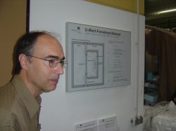 2004年8月19日 フラウンホーファー建築物理研究所 熱伝導率を測定する装置の前で