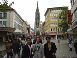 2004年8月21日 ミュンヘンへ移動中にウルムの町で(左から中村議員、田中副理事長、竹川理事長)
