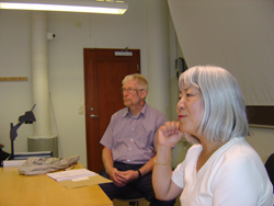 2004年8月31日 イエテボリ チャルマシュ工科大学 団地再生について話をするヤーン教授と通訳の友子ハンソンさん