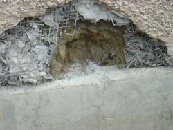 2006年8月26日 ストックホルム リンキビー地区の古い建物の壁 壁の穴から見える断熱材
