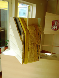 2006年8月26日 ストックホルム 超高断熱テラスハウスの壁断面(断熱材)