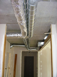 2006年8月28日 イエテボリ フレッリソースの無暖房住宅(パッシブハウス)の熱交換換気装置のダクト配管