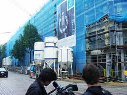 2006年9月1日 ドイツ ハンブルグ 外断熱施工中のビルと撮影する「ガイアの夜明け」撮影クルー