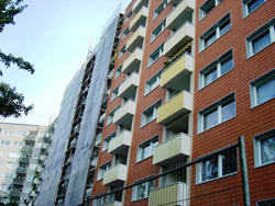 2006年9月2日 ドイツ ハンブルグ 外断熱改修後の建物と後付バルコニー(全景)