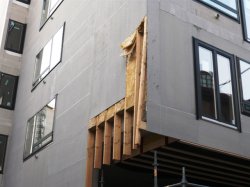 2008年3月31日 スウェーデン マルメ市街地の外断熱改修現場 木製枠に繊維系断熱材