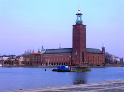 2008年4月4日 スウェーデン ストックホルム 宿泊した船のホテルからみたストックホルム市庁舎