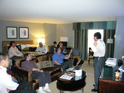 2008年4月10日 米国 夕方、クレムキー専務を囲んで食事前のミィーティング