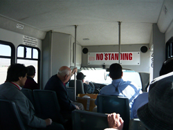 2008年4月11日 米国 急遽バスで今回のホテルの仕様を決めるために作られたモックアップ現場に向かう