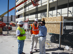 2008年4月11日 米国 施工中の外断熱ホテル現場に到着するが、抜き打ち検査と重なり中に入れない